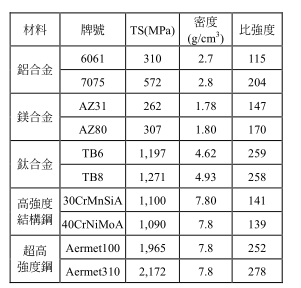 圖1 各種金屬的比強度
